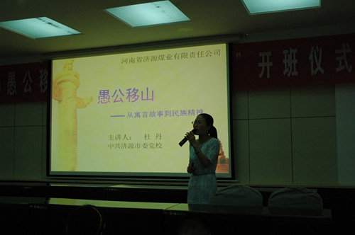 之后,济源市委党校讲师杜丹带来了题为《愚公移山—从寓言故事到民族精神》的精彩讲座,从口口相传的民间传说吕三太“别倒山”到《列子·汤问》愚公移山的寓言神话,从近代蔡元培,傅斯年对于愚公移山精神的不断阐释到毛泽东对愚公移山精神多次引用对中国社会发展的深刻影响。她用亲切朴实的语言,严谨科学的态度,讲述了愚公移山精神成为民族精神的其客观性和必然性。之后,她有针对性地援引济源煤业公司64年的发展历程,将愚公精神从寓言故事升华到民族精神,再具体联系到济煤精神,鼓励大家要不断学习传承和弘扬愚公精神,再创济煤辉煌。杜丹老师精彩的讲解赢得了广大干部职工的一致好评。